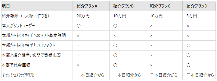 紹介報酬および紹介プラン内容