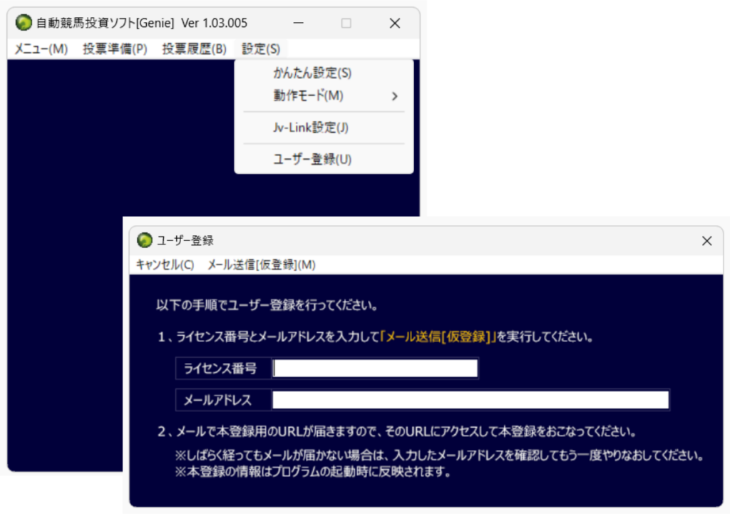 まずは、下記のリンクから自動競馬投資ソフト「Genie」無料体験版をダウンロードしてください。